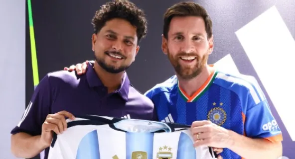 कुलदीप यादव को मिली दिग्गज लियोनेल मेसी से साइन की हुई अर्जेंटीना फुटबॉल टीम की जर्सीकुलदीप यादव को मिली दिग्गज लियोनेल मेसी से साइन की हुई अर्जेंटीना फुटबॉल टीम की जर्सी...